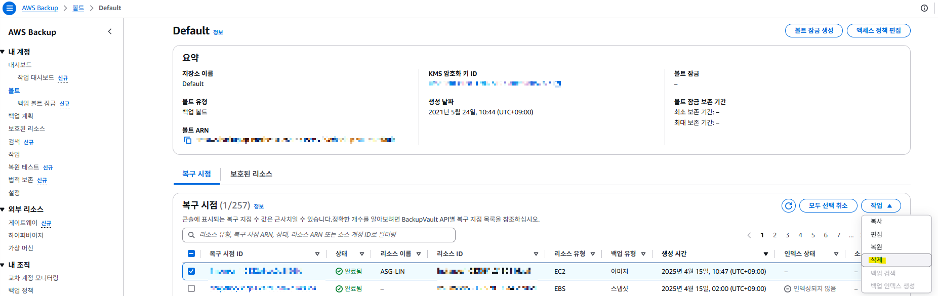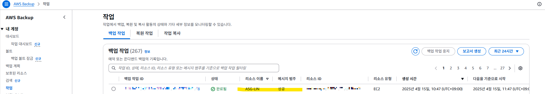 1-4. 위 절차를 따라했어도, AWS Backup의 작업에는 기록이 남는 게 맞음!