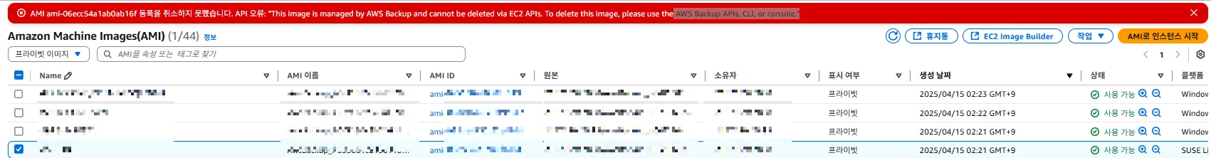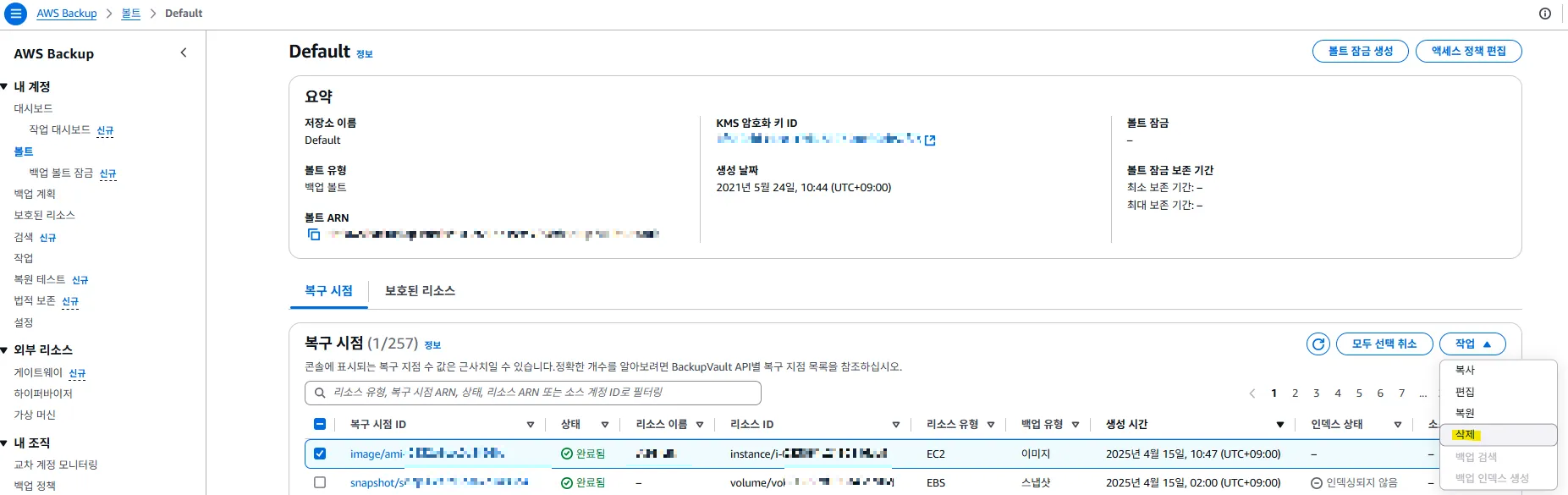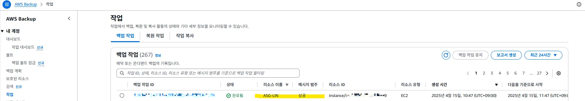 4. 위 절차를 따라했어도, AWS Backup의 작업에는 기록이 남는 게 맞음!