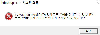 vcruntime140.dll이(가) 없어 코드를 실행을 진행할 수 없습니다