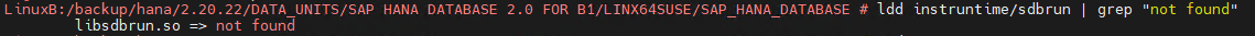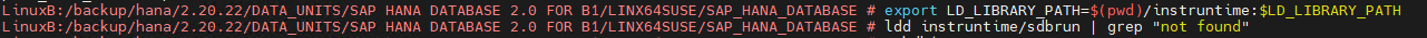 export LD_LIBRARY_PATH=/backup/hana/2.20.22/DATA_UNITS/SAP\ HANA\ DATABASE\ 2.0\ FOR\ B1/LINX64SUSE/SAP_HANA_DATABASE/instruntime:$LD_LIBRARY_PATH