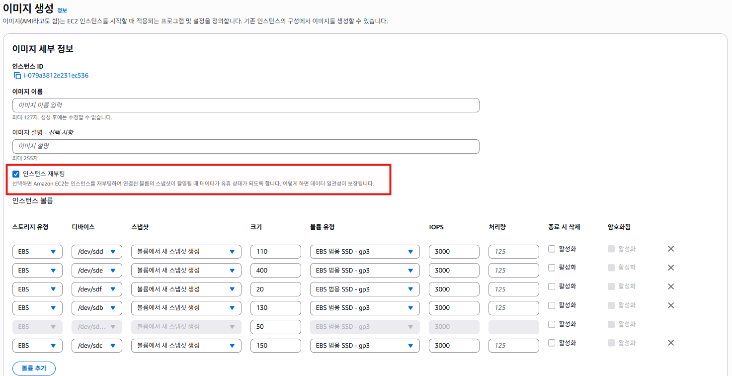 운영 중인 DB 서버의 이미지를 뜨고자할 때 해당 체크박스를 유의해야 한다!