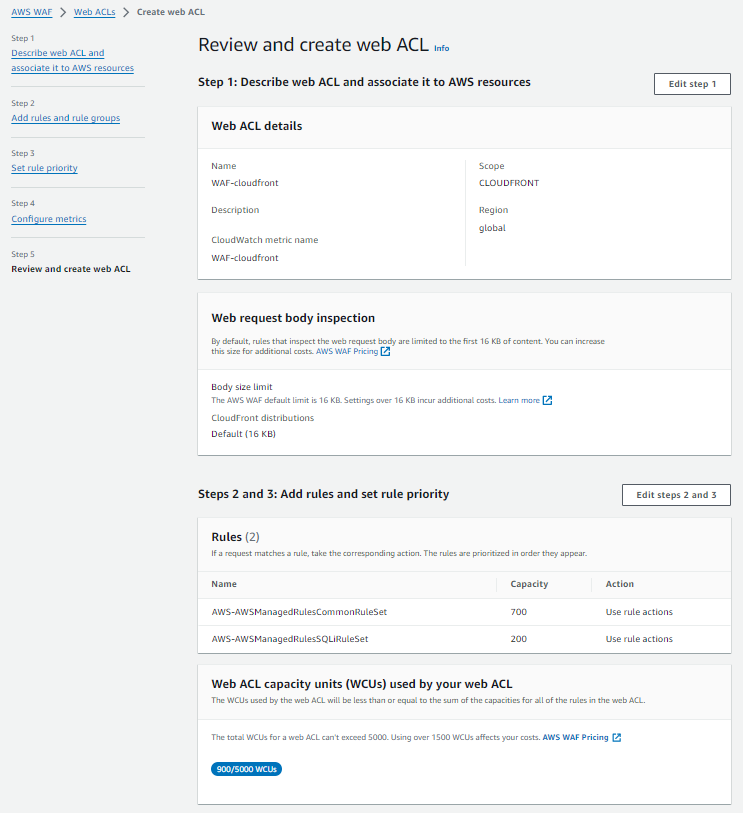1. AWS WAF > Web ACLs > Create web ACL 클릭