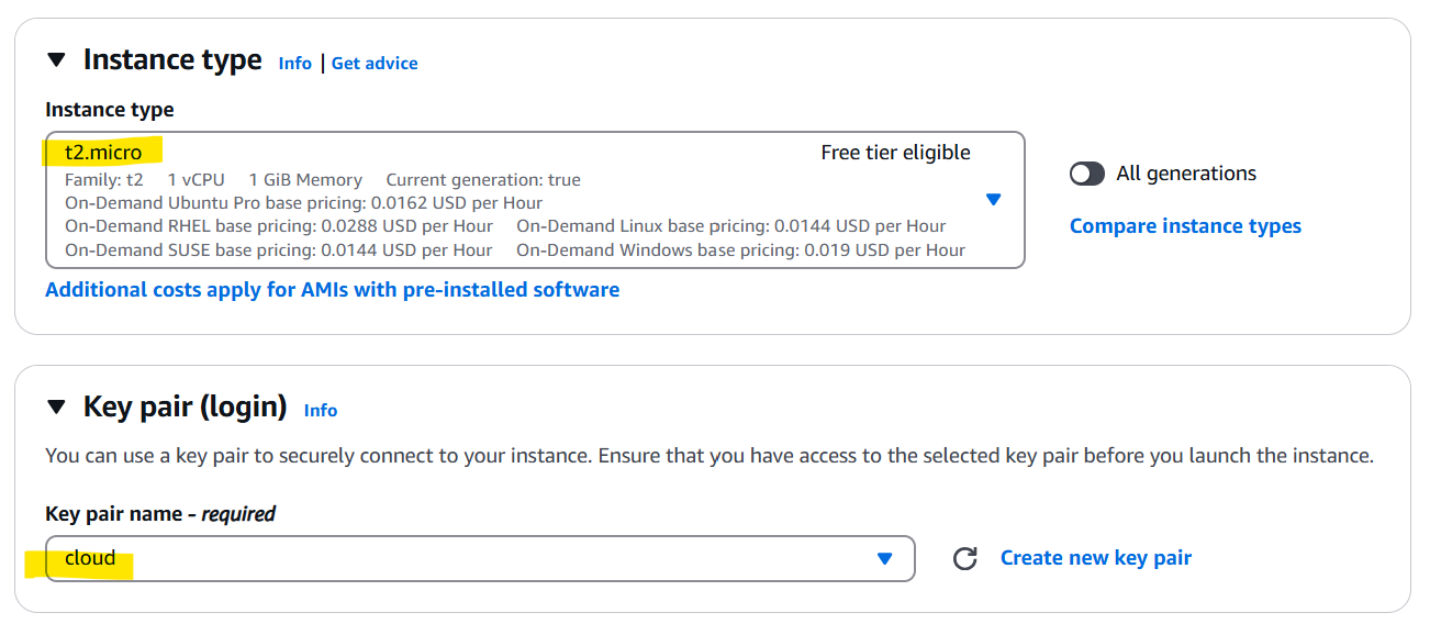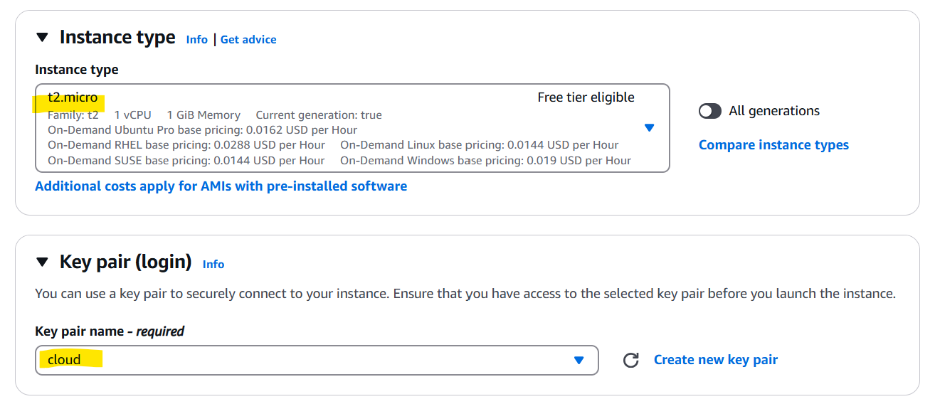 비용 절약을 위해 instancae type를 t2.micro로 설정했지만, t2.medium 추천