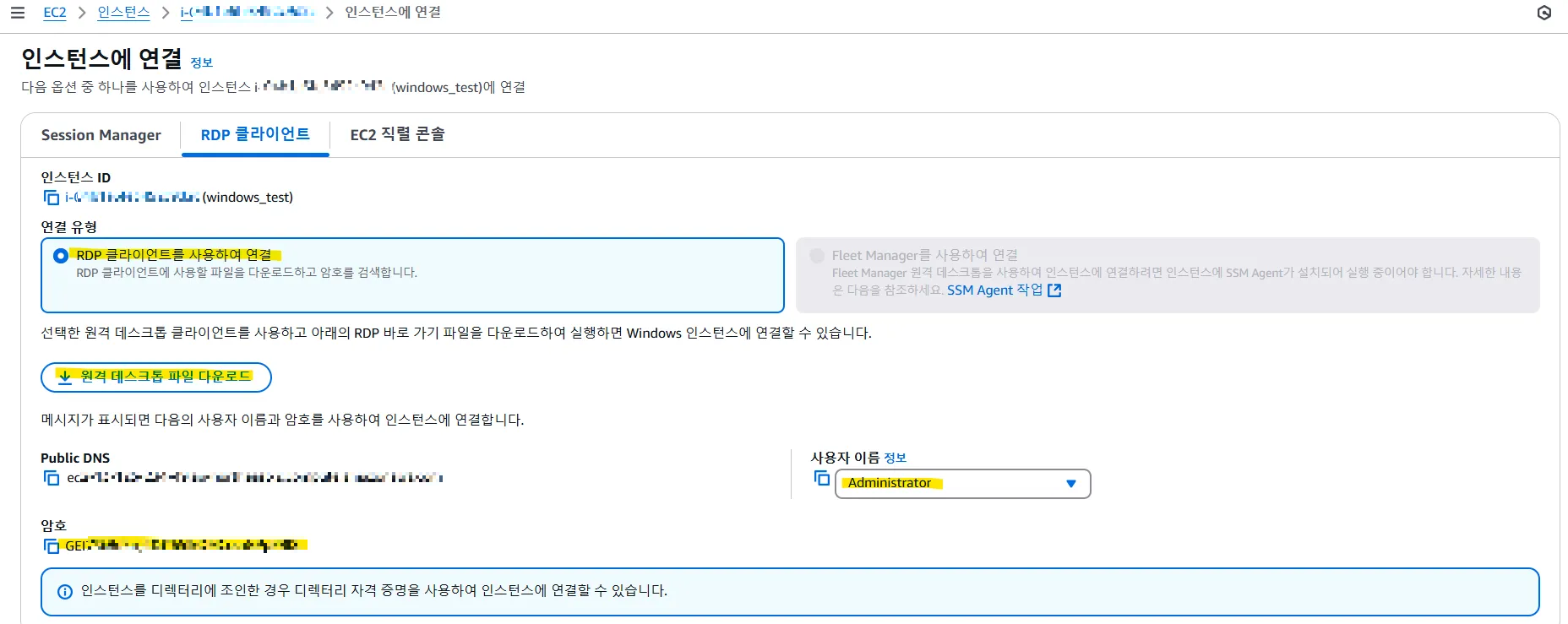 *이전 단계에서 Windows 전용 EC2를 생성했으므로 아래 링크 참조