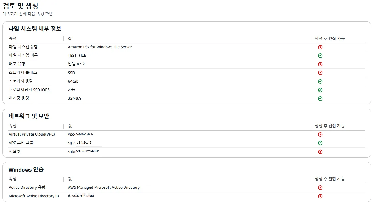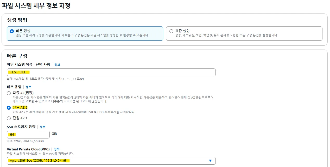 2-1. FSx >파일 시스템 > 파일 시스템 생성