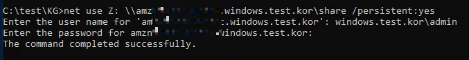 net use Z: \\amznfoooooooooo.windows.test.kor\share /persistent:yes