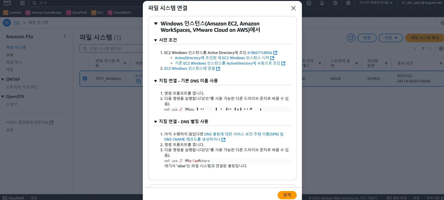 Z: (AWS FSx를 뜻함)는 파일 탐색기에서 볼 수 있음