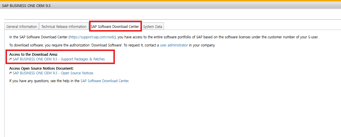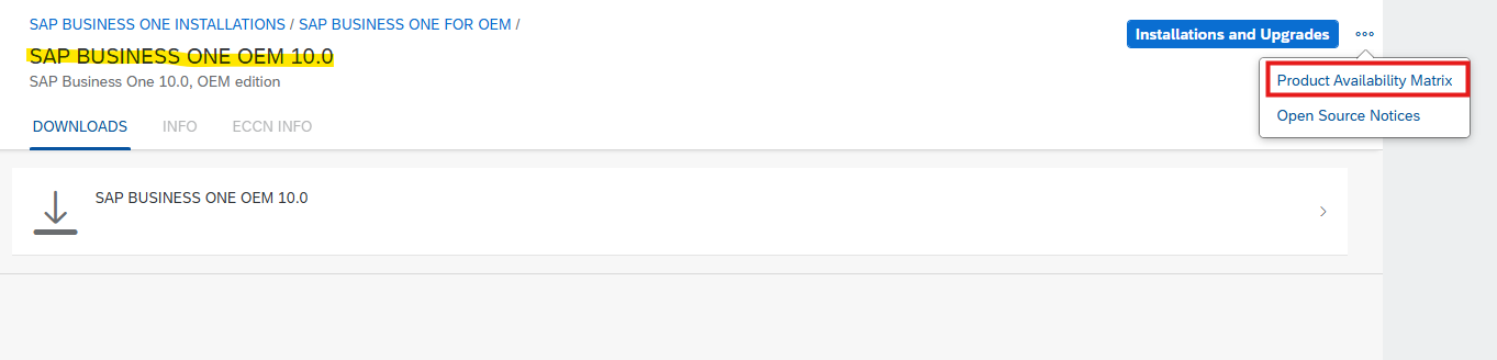SAP > SAP B1 Products > SAP B1 FOR OEM > SAP B1 OEM 10.0 > Product Availability Matrix > 원하는 버전 선택 > SAP Software Download Center > Access to the Download Area > 원하는 버전 다운받기