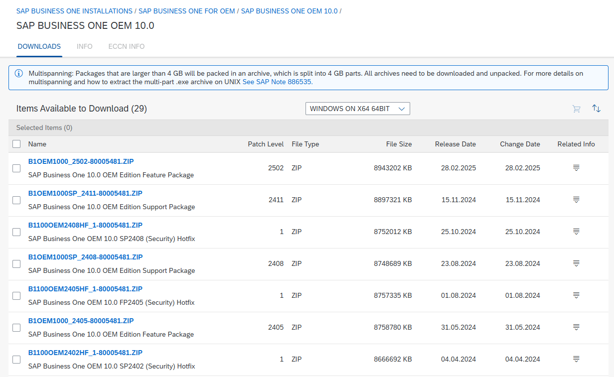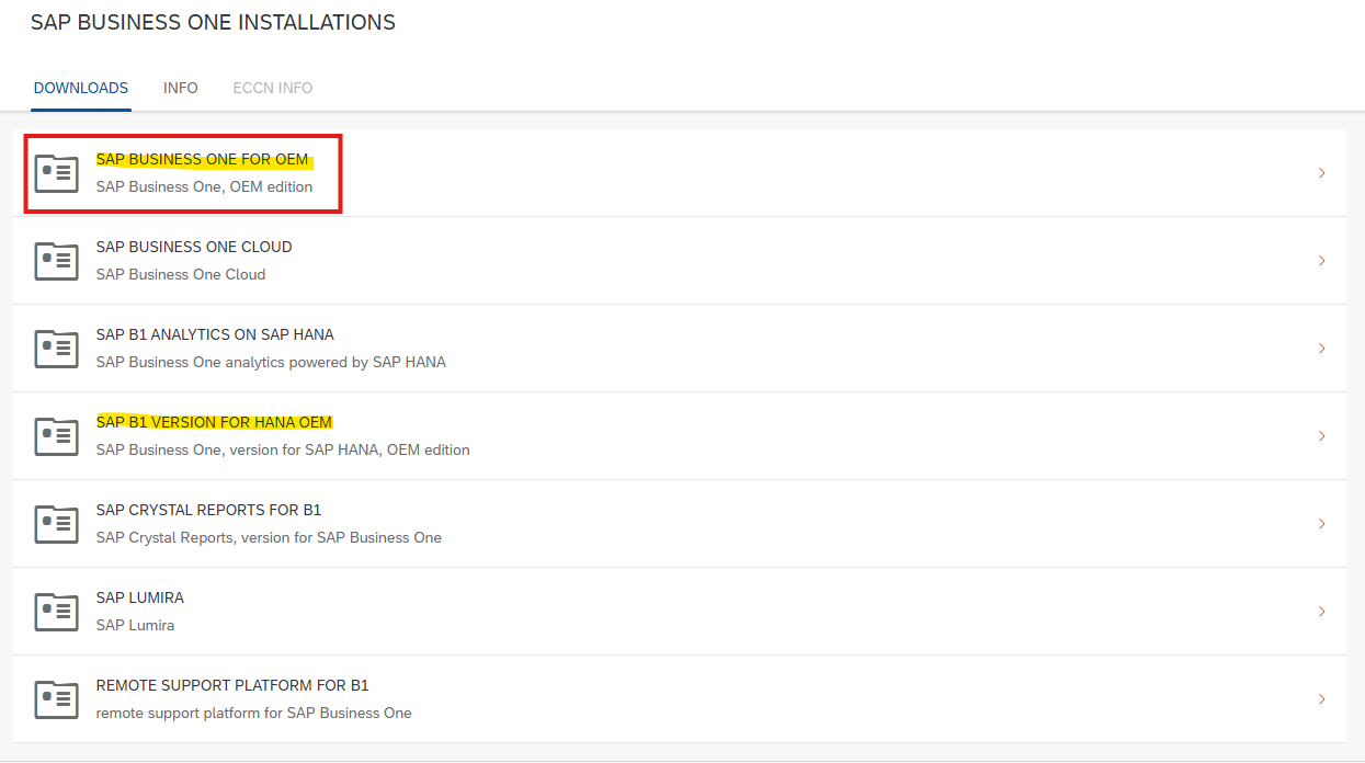 SAP > SAP B1 Products > SAP B1 FOR OEM > SAP B1 OEM 10.0 > 원하는 버전 다운 받기