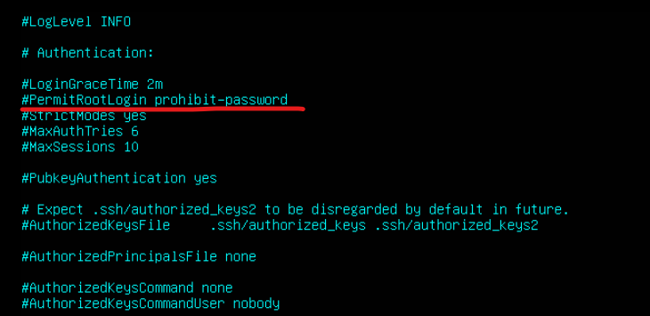 #PermitRootLogin prohibit-password 를 PermitRootLogin yes 로 변경!